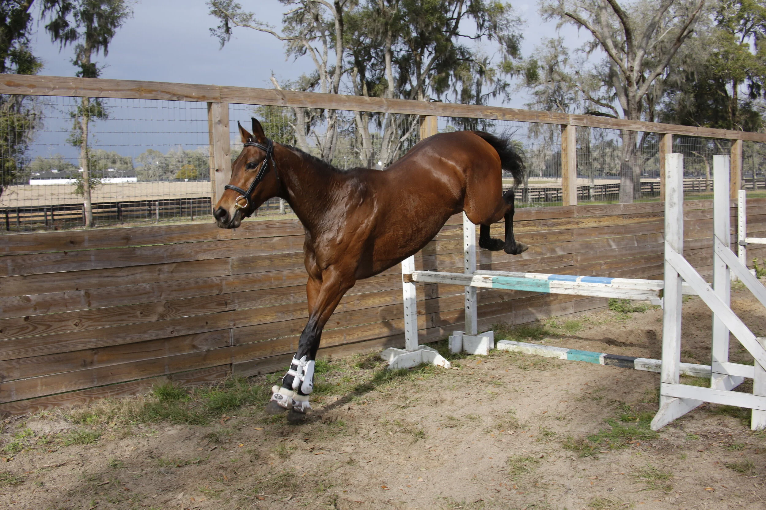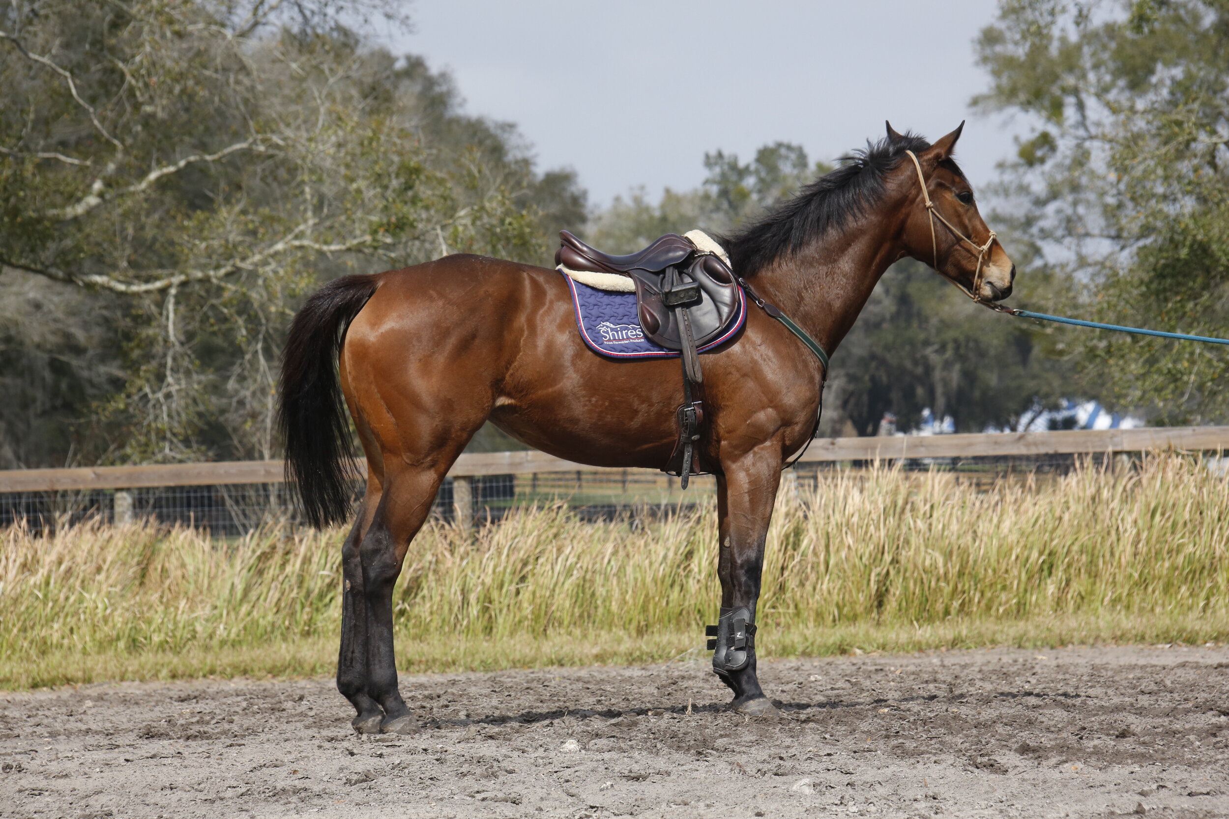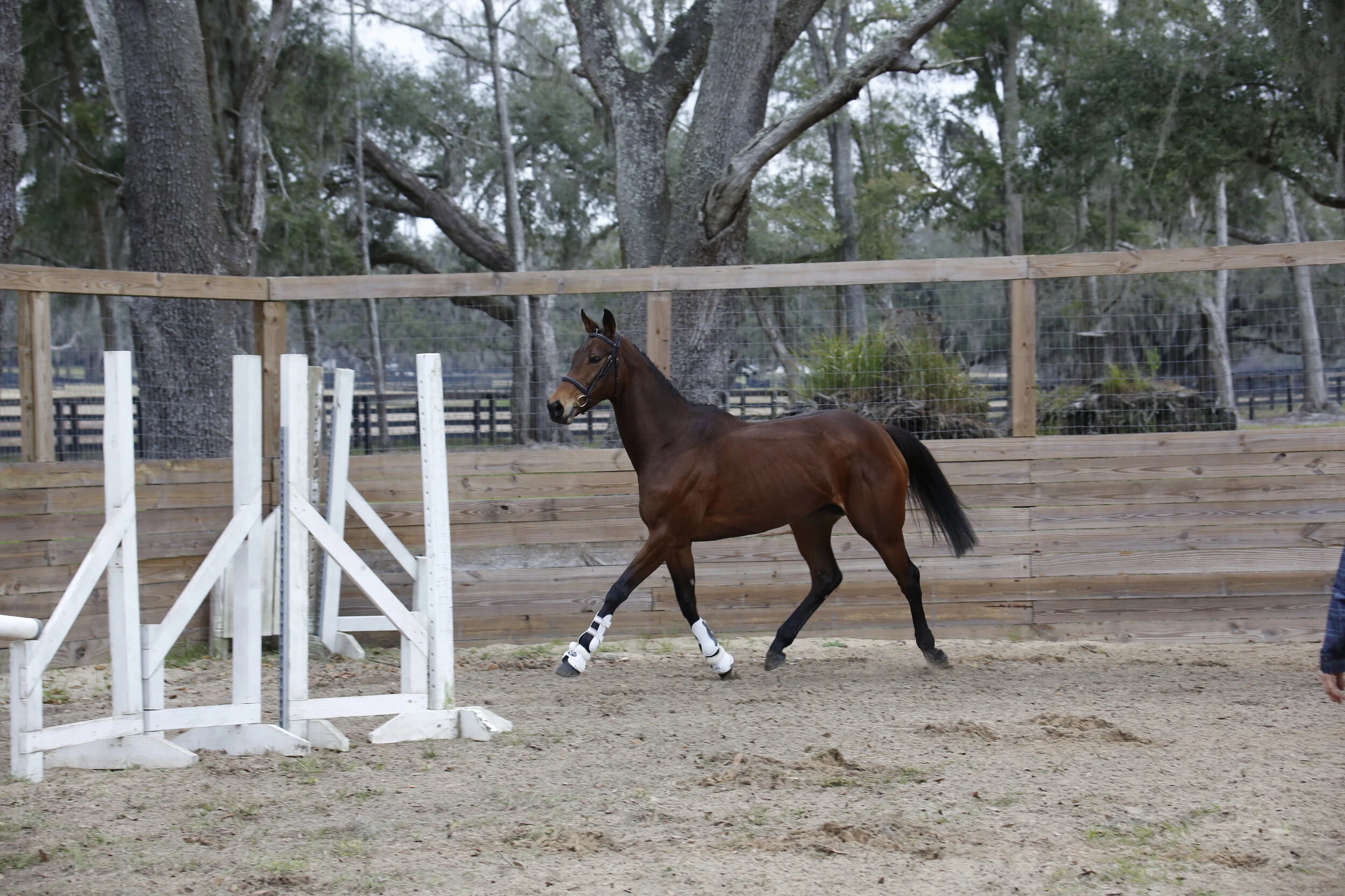 Stella is currently being restarted from the racetrack and is RRP eligible. She is kind and wants to do her job properly, but her athleticism shows that she will be best suited for a rider with some experience with thoroughbreds. She is happy to move forward from the leg and accept the bridle. She is currently schooling Beginner Novice (2’6”) to Novice (2’11”) level and will be heading to her first competitions at the end of April. She is brave to the fences and will jump from anywhere, without feeling like she’s taking over the ride. She has been cross country schooled several times and is always a pleasure with an adjustable gallop and a great understanding of ditches, water, and banks.