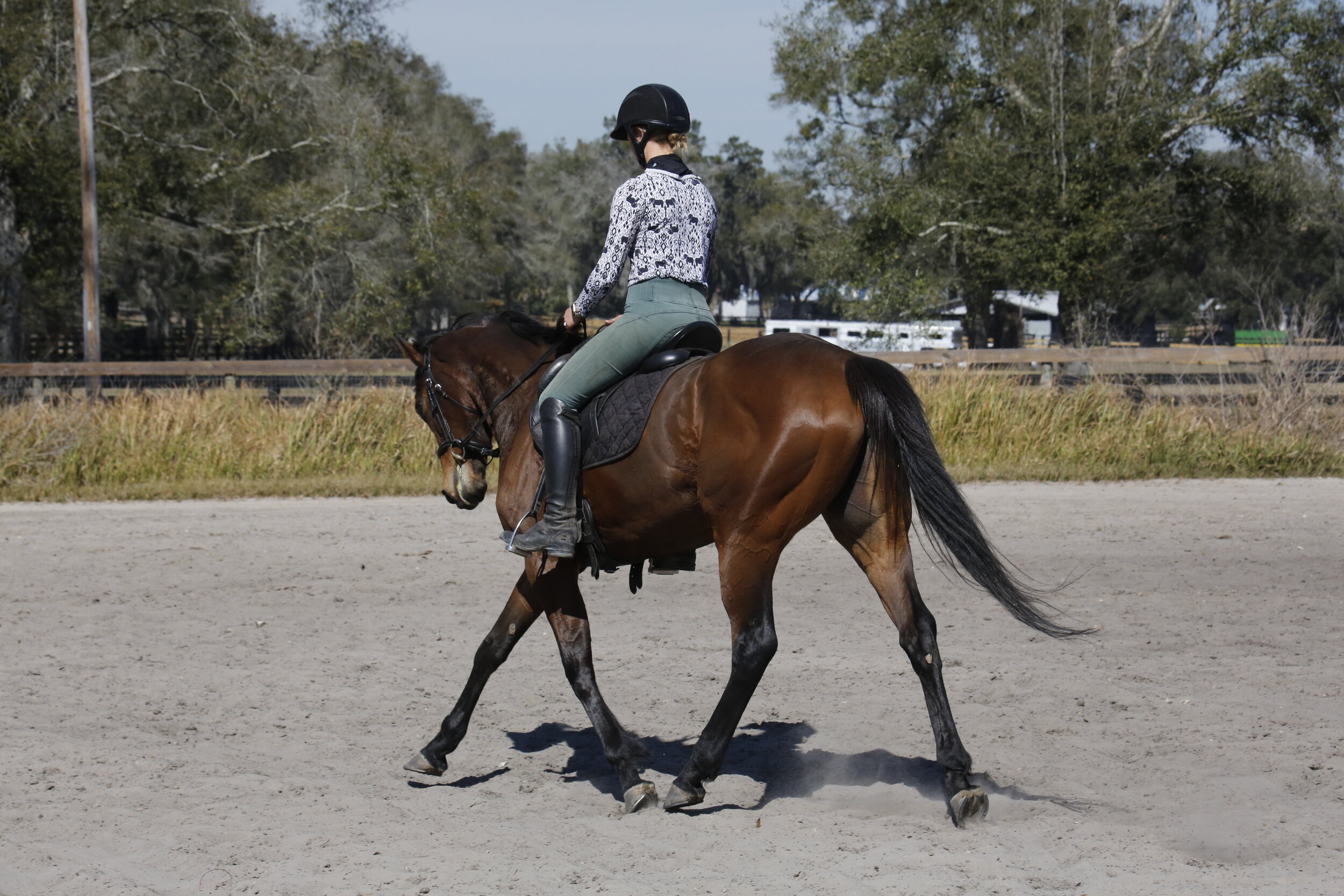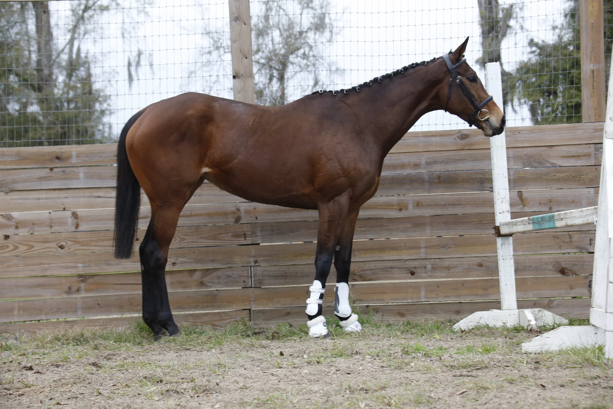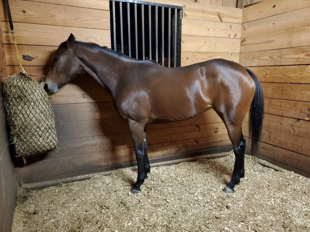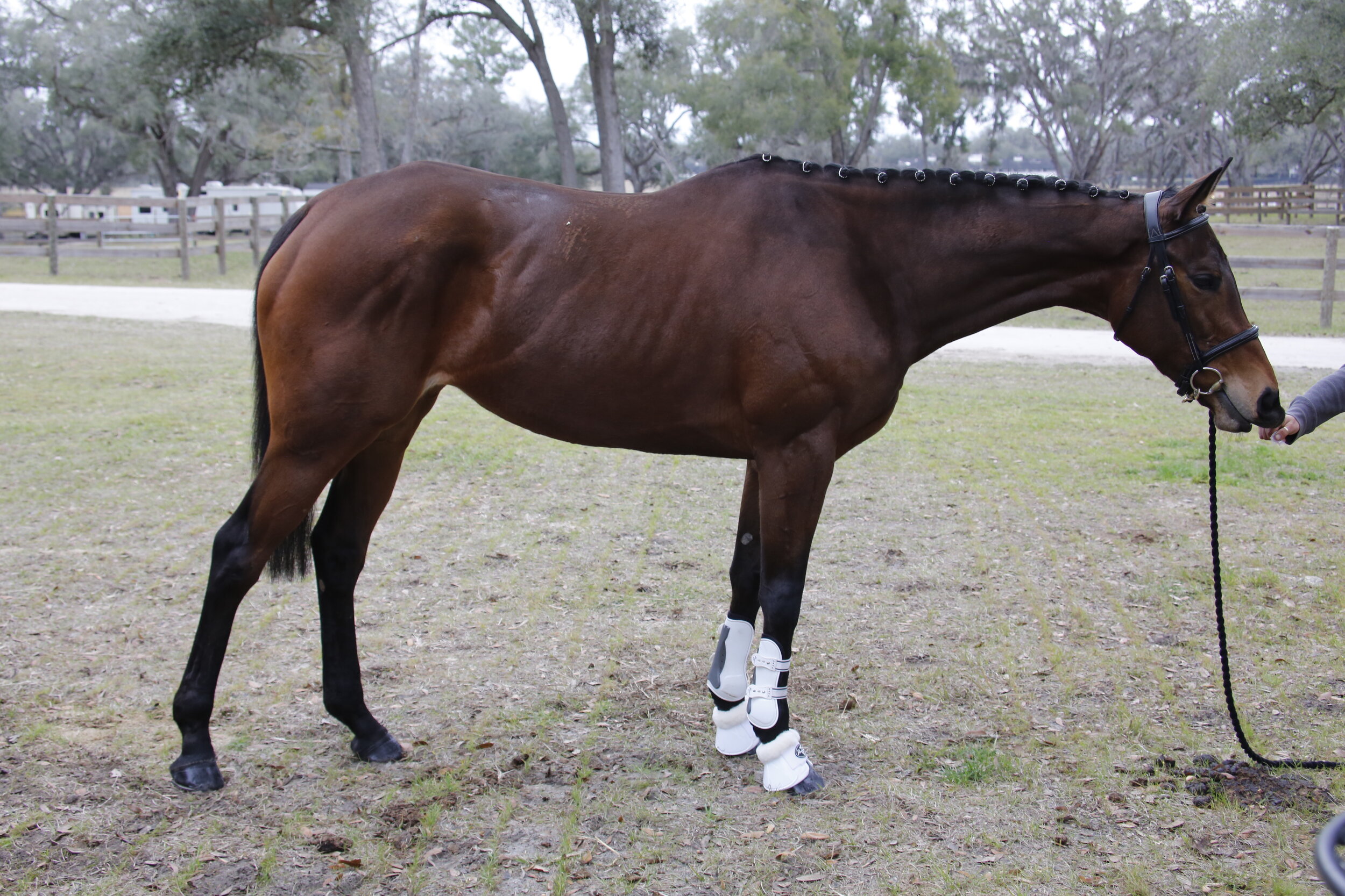 Stella is currently being restarted from the racetrack and is RRP eligible. She is kind and wants to do her job properly, but her athleticism shows that she will be best suited for a rider with some experience with thoroughbreds. She is happy to move forward from the leg and accept the bridle. She is currently schooling Beginner Novice (2’6”) to Novice (2’11”) level and will be heading to her first competitions at the end of April. She is brave to the fences and will jump from anywhere, without feeling like she’s taking over the ride. She has been cross country schooled several times and is always a pleasure with an adjustable gallop and a great understanding of ditches, water, and banks.