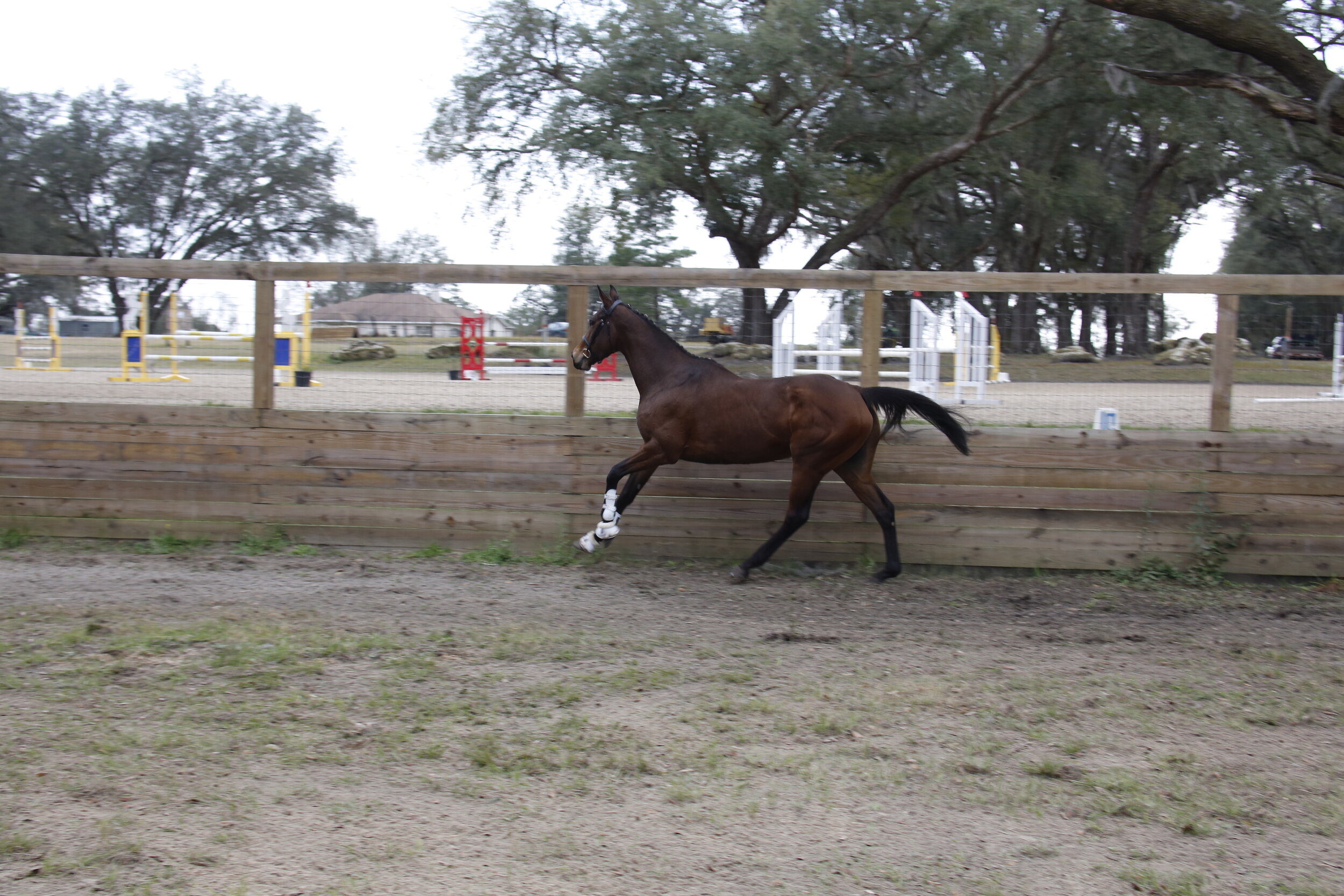 Stella has all the makings of a top athlete! She is conformationally correct and displays 3 incredibly balanced gaits. She is attentive and a quick learner. We want to see this girl go far in whatever career she chooses! She has all the moves to win the flat hands down, and is so good with her body she will undoubtedly jump clean, and big! She has had some opportunity to free jump and shows impressive instincts.